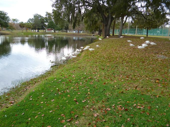 Keywords: white ibis birds water flock city park ocala florida