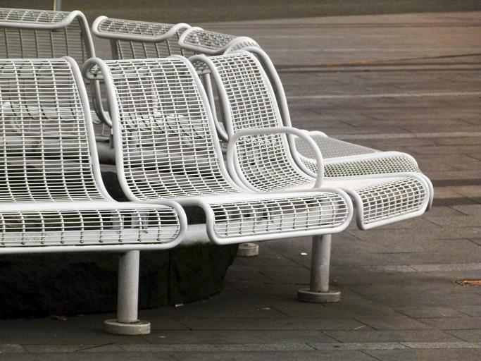 Keywords: white metal bench resting rest area resting place