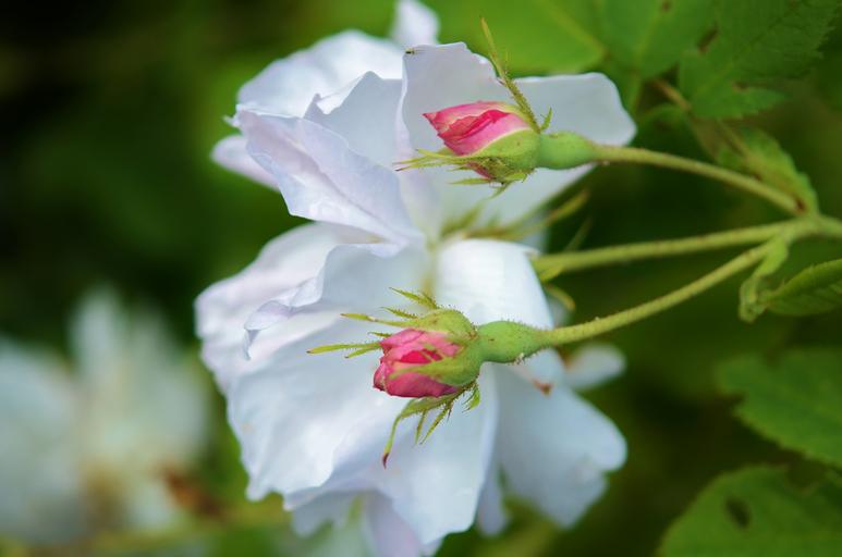 Keywords: white rose flower floral nature blossom green leaf pink petal plant bloom summer garden blooming natural macro