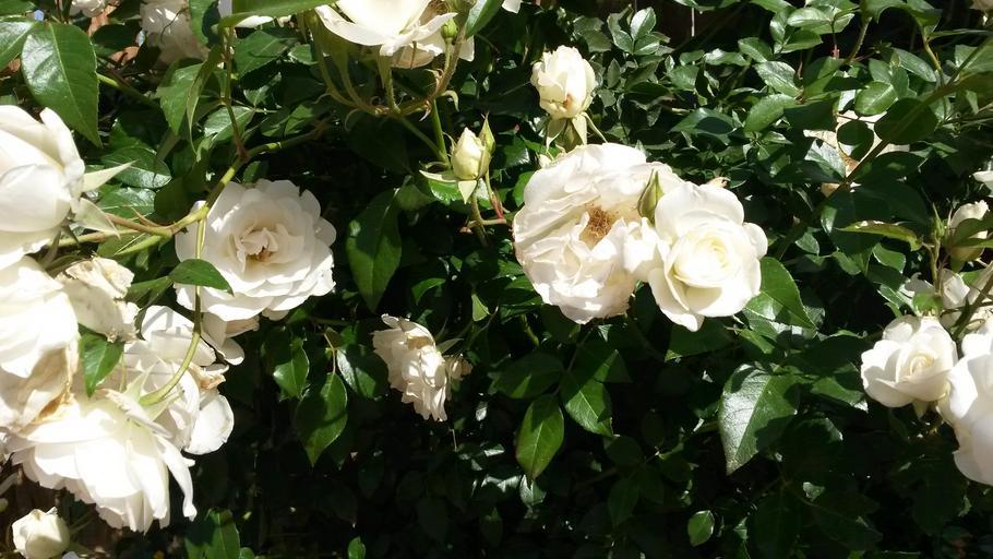 Keywords: white roses rose bush garden spring summer plant floral gardening