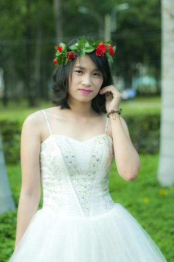 Keywords: white shirt vietnam girl young shirt flower long coat laugh emotion sunny