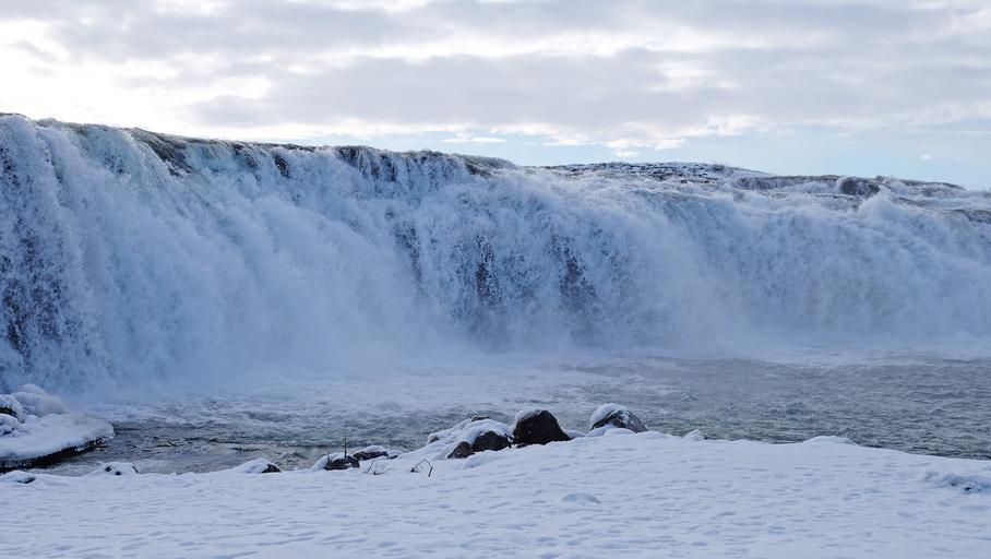 Keywords: white snow winter cold beautiful amazing force raging waterfall faxafoss waterfall reykjavik iceland scandinavia europe