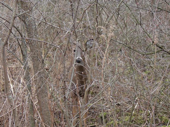 Keywords: white tailed deer hiding leave less bushes animal nature woods