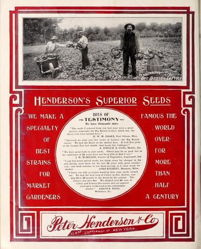 Keywords: Wholesale price list of requisites for florists and market gardeners (16589192280).jpg H ENDERSON'S gUPDRIOR S EEDS <br> –ˇ <br> 1 <br> bits or <br> TESTIMONY <br> We have thousands more <br> CTI 1JAI ir TUC <br> ' The seeds I ordered from you last year were a great <br> success especially the Big Boston Lettuce which was the <br> finest ever seen around here <br> H W M DRAKE Port Gibson Miss <br> Enclosed we send you two views of Lettuce ” the Big Boston <br> variety We had the finest on the market here It took first prize <br> at the County Fair last month ” had heads like Cabbages <br> A ZIMLICK SONS Mobile Ala <br> We have great faith in your seeds Others may be as good but in <br> my experience of 25 years have not been able to find it out <br> J H McMILLEN Grower of Vegetables Logansport Ind <br> I can buy lower priced seeds but deem yours far cheaper in the <br> end having used them for the last 10 years with great satisfac- <br> tion ” and shall continue to use them as long as I raise truck for <br> mar ket JOHN KOLBERT Mankato Minn <br> I know you will appreciate knowing how your seeds turned <br> out We had the best crop of Celery in this district run- <br> ning 20 to 28 pounds to the dozen by the carload The <br> Lettuce was also fine We shipped over 60 cars of <br> Celery and Lettuce this season and our superior <br> stock gave us the lead in the i hiladelphia <br> market AARON R NILES <br> Wellsboro Pa <br> WE MAKE A <br> or <br> BEST <br> STRAINS <br> FOR <br> MARKET <br> GARDENERS <br> WOREO <br> OVER <br> FOR <br> MORE <br> THAN <br> HAEE <br> A GENTIRY 45174070 160879 84546 Text http //www biodiversitylibrary org/page/45174070 1912 Henderson Peter Co ; Stumpp Walter Co New York N Y Biodiversity Heritage Library Wholesale price list of requisites for florists and market gardeners / 1897-1913 Garden Stories Catalogs Henderson Peter Co New York New York State Nurseries Horticulture Nursery stock Seed industry and trade Seeds Stumpp Walter Co New York N Y Mertz Library The New York Botanical Garden bhl page 45174070 dc identifier http //biodiversitylibrary org/page/45174070 bhlGardenStories Flowers Bulbs Vegetables BHLinbloom henderson peter co new york new york state nurseries horticulture stumpp walter co new york n y mertz library the new york botanical garden bhlgardenstories bhlinbloom Information field Flickr posted date ISOdate 2015-03-10 CC-BY-2 0 BioDivLibrary https //flickr com/photos/61021753 N02/16589192280 2015-08-24 21 57 45 cc-by-2 0 PD-old-70-1923 Wholesale price list of requisites for florists and market gardeners 1912 Photos uploaded from Flickr by Fæ using a script |