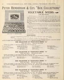 | Keywords: Wholesale price list of requisites for florists and market gardeners (16569158317).jpg 20 <br> Peter Henderson Cits Box Collections <br> VEGETABLE SEEDS <br> FOR RETAILING <br> For the convenience of those who wish to purchase and put our seeds on sale <br> in their stores and do not know exactly what to select we have made up the following <br> Box Collections The varieties contained in them are such as our experience <br> has shown to be the most popular and salable though of course you are at per- <br> fect liberty to make your own selections from our Retail Catalogue <br> for the current year or from the lithographed packets listed on <br> page 19 <br> Our New Counter Boxes we think are the hnest ever sent out and as the differ- <br> ent varieties of seeds are fully displayed your customer can see exactly what is wanted <br> without disturbing the entire contents of the box consequently the seeds sell <br> themselves <br> These Vegetable Seed Counter Boxes we do not sell but we loan one <br> to every dealer ordering our vegetable seeds in lithographed packets to the amount of not <br> less than 6 00 net annually; where collections requiting two of these counter boxes <br> are ordered such as collections - C and D we will loan the required tivo cases <br> We make no charge for packing or shipping but the freight or express charges must be <br> paid by customers <br> DIMENSIONS <br> Twenty-four Compartment box 26 inches long x 14 inches wide x 3 inches deep ; we ght empty 6 lbs <br> Thirty-six 29 19 3 9'A lbs - <br> Each compartment will hold 10 to 20 packets according to the size of the seeds <br> The varieties comprising these collections are such as our experience has shown to be the most popular and salable though Of course you are at perfect <br> liberty to make your Own selection from the list on page 19 and our Retail Catalogue for the current year <br> BOX COLLECTION OF VEGETABLE SEEDS A <br> COLLECTION B VEGETABLE SEEDS <br> Retail value 12 00 Wholesale price 6 00 <br> Contains 240 packets 10 each of 24 varieties that retail at 5c each viz <br> Beet Lon Smooth Blood <br> Blood 1 urnip <br> Cabbage Early Jersey Wakefield <br> Selected Late Flat Dutch <br> Ca-rot Danvers <br> Celery Half Dwarf <br> Cucumber Ea'ly White Spine <br> Egg Plant New York Improved <br> Lettuce Early Curled Simpson <br> Boston Market He»d <br> Melon Musk Nutmeg <br> Water Mountain Sweet <br> Onion Wethersfield Ked <br> W hue Globe <br> Parsnip Long Smooth <br> Pepper Large Bell or Bull Nose <br> Pumpkin Cheese <br> Radish Long Scarlet <br> Radish Scarlet Turnip <br> Squash Hubbard Winter <br> White Si alloped Summer <br> Tomato Trophy <br> Turnip Golden Ball <br> Red Top Strap Leaf <br> BOX COLLECTION OF VEGETABLE SEEDS B <br> Retail value 18 00 Wholesale price 9 00 <br> Contains 360 packets 10 each of 36 varieties that retail at 5c each <br> The contents include all of the varieties mentioned in collection A with the following in addition <br> Cauliflower Extra Early Paris <br> Celery Golden Dwarf <br> Endive Green Curled <br> Leek Ameiican Flag <br> Melon Musk Emerald Gem <br> Onion Yellow Danvers <br> Parsley Emerald <br> Radish French Breakfast <br> Squash Yellow Summer Crookneck <br> Spinach Savoy-leaved <br> Tomato Perfection <br> Turnip American Purple Top Ruta Bag i <br> BOX COLLECTION OF VEGETABLE SEEDS C <br> Retail value 24 00 Wholesale price 12 00 <br> Contains 480 packets 10 each of 48 varieties that retail at 5c each This collection requires two 24 compartment boxes <br> The contents include all of the varieties mentioned in A and B collections with the following in addition <br> B et Eclipse <br> Cabbage Early Summer <br> Celeriac Smooth Prague <br> Cucumber Nichol's Medium Green <br> Kale Dwarf Green Curled <br> Kohl Rabi White Vienna <br> Melon Water Kolb's Gem <br> Onion Extra Early Red <br> Pepper Long Red Cayenne <br> Radish White Tipped Scarlet Turnip <br> Salsify Long White <br> Squash Boston Marrow <br> BOX COLLECTION OF VEGETABLE SEEDS D <br> Retail value 36 00 Wholesale price 18 00 <br> Contains 720 packets 10 each of 72 varieties that retail at 5c each This collection requires two 36 compartment boxes <br> The contents include all of the varieties mentioned in A B and C collections with the following in addition <br> Labbage American Drumhead Savoy Lettuce Salamander Onion White Portugal Squash Vegetable Marrow <br> arrot Long Orange Melon Musk Delmonico Red Globe Golden Custard <br> Scarlet Horn Water Green and Gold Pepper Golden Dawn Tomato Golden Sunrise <br> Celery New Rose Florida Favorite Sweet Mountain Mikado <br> 1 ucum'ber Short Green Okra White Velvet Radish Early W hite Turnip Turnip Early Whit- trap I eaf <br> lettuce Paris White Cos Onion Yellow Dutch Yellow Summer Turnip Purple Top White Globe 45172964 160879 84546 Page 20 Text http //www biodiversitylibrary org/page/45172964 1897 Henderson Peter Co ; Stumpp Walter Co New York N Y NameFound Medium NameConfirmed Medium NameBankID 4904049 Biodiversity Heritage Library Wholesale price list of requisites for florists and market gardeners / 1897-1913 Garden Stories Catalogs Henderson Peter Co New York New York State Nurseries Horticulture Nursery stock Seed industry and trade Seeds Stumpp Walter Co New York N Y Mertz Library The New York Botanical Garden bhl page 45172964 dc identifier http //biodiversitylibrary org/page/45172964 bhlGardenStories Flowers Bulbs Vegetables Box Collection of Vegetable Seeds BHLinbloom henderson peter co new york new york state nurseries horticulture stumpp walter co new york n y mertz library the new york botanical garden bhlgardenstories box collection of vegetable seeds bhlinbloom Information field Flickr posted date ISOdate 2015-03-10 CC-BY-2 0 BioDivLibrary https //flickr com/photos/61021753 N02/16569158317 2015-08-24 21 57 41 cc-by-2 0 PD-old-70-1923 Bulbs Wholesale price list of requisites for florists and market gardeners 1897 Photos uploaded from Flickr by Fæ using a