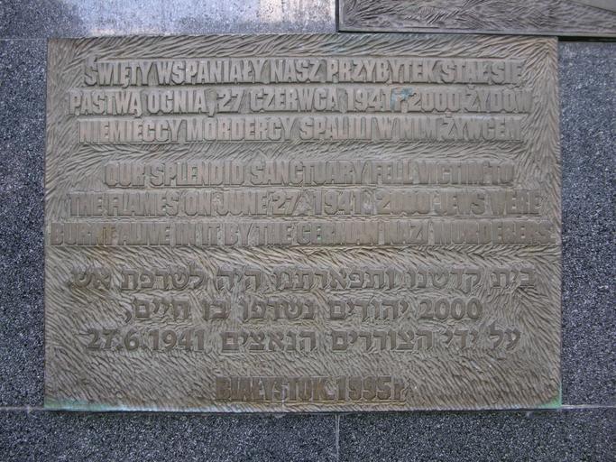 Keywords: Wielka Synagoga tablica 2 Bialystok.jpg Great Synagogue in Białystok Own 2007-07-01 T15 42 46 Ejkum Great Synagogue in Białystok Plaques in Białystok 27 June 1941 Fires in Poland Multilingual signs in Poland