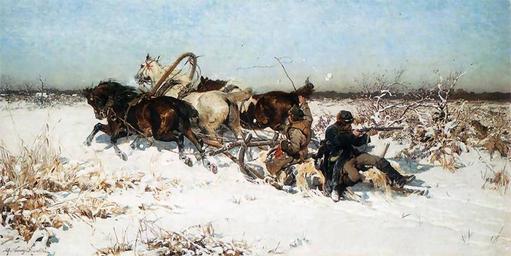 | Keywords: Wierusz-KowalskiAlfred.ZaatakowaniPrzezWilki.1880.ws.jpg Artwork Creator Alfred Wierusz-Kowalski en Attacked by wolves 1880-10 oil canvas cm 61 6 121 3 private collection object history credit line accession number http //www pinakoteka zascianek pl/Wierusz_Kowalski/Index htm pinakoteka zascianek pl similar paintings<gallery> File Alfred Wierusz-Kowalski - Trojka ścigana przez wilki jpg File Alfred Wierusz-Kowalski - Trojka ścigana przez wilki 2 jpg File Alfred Wierusz-Kowalski - Trojka ścigana przez wilki 3 jpg </gallery> PD-old-auto-1923 1915 DEFAULTSORT Alfred Wierusz-Kowalski - Trójki prowadzonej przez wilki 01 Paintings by Alfred Wierusz-Kowalski Paintings of troikas Paintings of wolves 1880 paintings Wierusz-Kowalski Alfred Paintings of hunters in snowy landscapes History of use of horses |