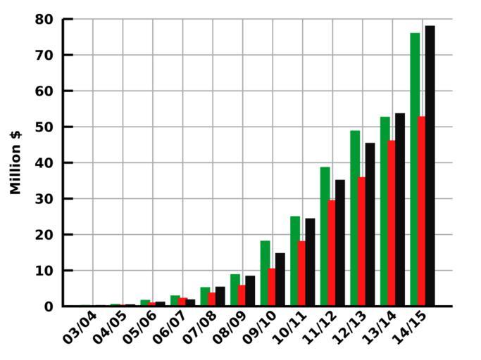 | Keywords: Wikimedia Foundation financial development-en.svg en English version 2016-01-12 File Wikimedia Foundation financial development svg Stefan Pohl other versions cc-zero Wikimedia statistics Wikimedia fundraising analysis Uploaded with UploadWizard |