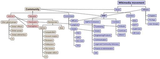 | Keywords: Wikimedia organizational and user rights hierarchy.svg en A diagram showing a rough hierarchy of various Wikimedia-related groups 2014-08-12 18 37 53 own PiRSquared17 I v + Created using LaTeX Tikz refined with Inkscape and compressed cc-zero Wikimedia diagrams |