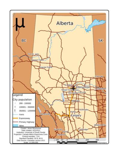 | Keywords: Wikipedia draft -Converted-.svg en This is a map of cities rivers lakes and major roadways in Alberta Canada Canadian census 2011 Jesse Moorhouse 3/27/2012 Central meridian -114 Standard parallels are 50N 60N Projection Canada Albers Equal Area Conic Scale 1 5 500 000 Created by Jesse Moorhouse using data from the 2011 Canadian census Arcmap 10 and Adobe Illustrator Cs5 Uncategorized 2015 May 16 | ||||
