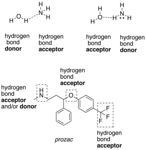 Keywords: WikipediaHDonorAcceptor.png en Illustration of hydrogen bond donors and acceptors both as groups in prozac and molecules ammonia and water Own Mcpazzo 2008-09-23 WikipediaHDonorAcceptor svg Hydrogen bonding Fluoxetine
