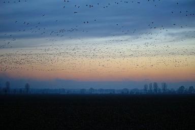 Keywords: wild geese evening sky nature field geese migratory birds landscape arable sky sunset