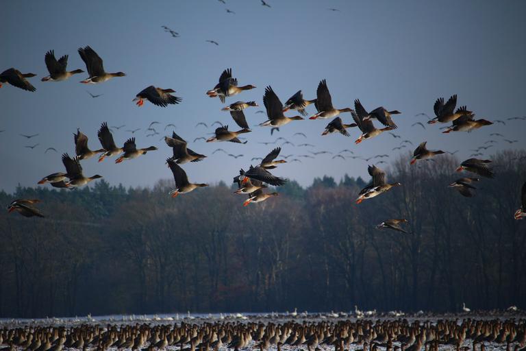 Keywords: wild geese flock of birds winter migratory birds swarm geese birds wild goose bird water bird migratory bird