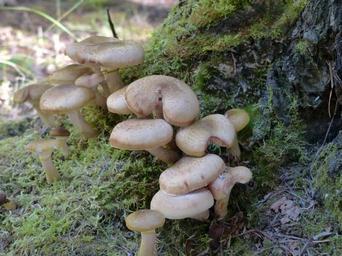 Keywords: wild mushrooms cluster nature plant toxic meadow forest autumn fall season wild plant close-up tree root