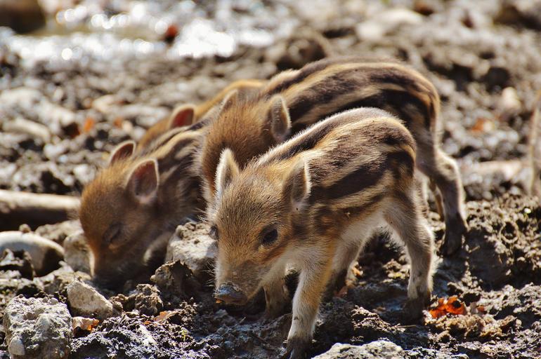 Keywords: wild pigs wildpark poing young animals piglet pig small funny cute sweet small pigs baby