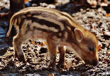 Keywords: wild pigs wildpark poing young animals piglet pig small funny cute sweet small pigs baby