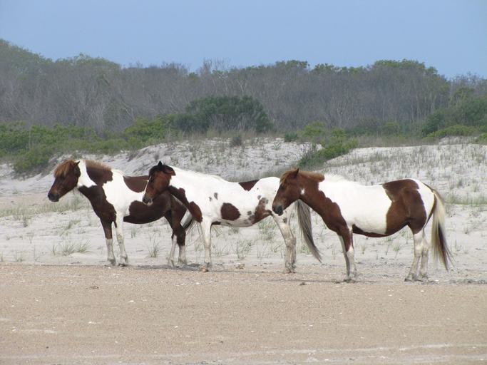 Keywords: wild ponies looking pinto assateague island virginia usa feral beach nature small herd horses wildlife wilderness sanctuary sand natural outdoors