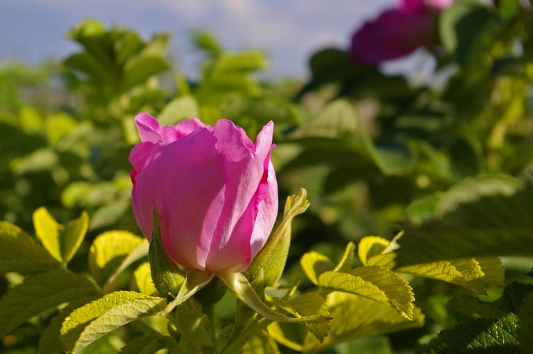 Keywords: wild rose baby rose potato rose rose hip garden bush nature plant pink red flower blossom bloom green park sunshine bud rose summer close bloom flora prickly rose family bed garden rose