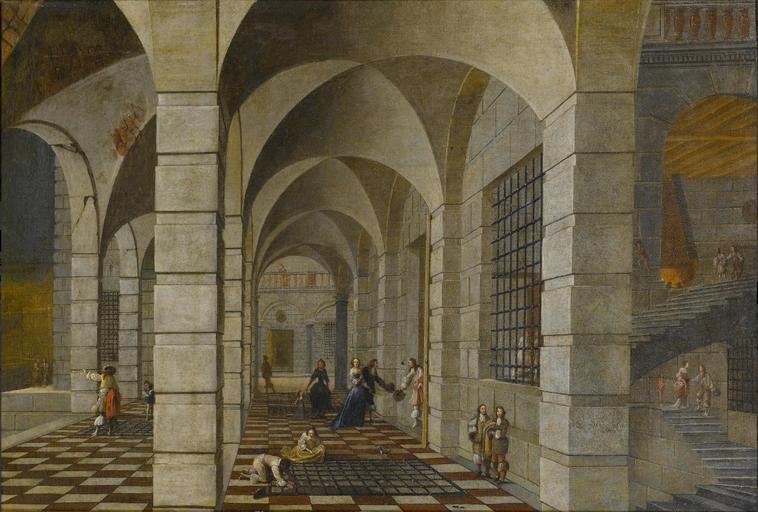 | Keywords: Wilhelm Schubert van Ehrenberg and Hieronymous Janssens - A dungeon interior with elegant figures.jpg Artwork creator Wilhelm van Ehrenberg and creator Hieronymus Janssens en A dungeon interior with elegant figures 1645 - 1687 https //www bonhams com/auctions/14705/lot/15/ Oil canvas cm 57 9 84 Sold at Bonhams 4 July 2007 in London lot 15<bɾ>Janssens painted the staff age indistinctly signed ' ren erg' lower right PD-old-100 Hieronymus Janssens Wilhelm Schubert van Ehrenberg 17th-century paintings of building interiors |