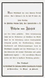 Keywords: Wilhelm von Ahlefeldt (1818-1897) 03.jpg de Todesanzeige für Carl Wilhelm von Ahlefeld t 1818-1897 Herr auf Treuholz und Wirklicher Geheimer Rat Landesdirektor Mitglied der Regierung in Plön und Klosterprobst von Uetersen own reproduktion original photo is more than 100 years old Umbekannt 1897 PD-old Wilhelm von Ahlefeldt 1818 “1897 Death notice |