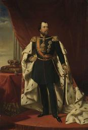| Keywords: Willem III (1817-90), koning der Nederlanden, Nicolaas Pieneman, 1856 - Rijksmuseum.jpg Artwork nl Portret van Willem III 1817-90 koning der Nederlanden Staande ten voeten uit in uniform met hermelijnen mantel De rechterhand in de zij de linkerhand op het zwaard Links op een kussen op een tafel liggen kroon en scepter Er bestaat een tweede schilderij van de hand van Pieneman dat sprekend lijkt op dit exemplaar en Portrait of William III 1817-90 King of the Netherlands Standing full-length cloak in uniform with ermine The right hand on his side the left hand on the sword To the left lying on a cushion on a table - crown and scepter There is a second painting by Pieneman that looks very similar to this one 1856 Oil on canvas cm 93 62 5 Institution Rijksmuseum Amsterdam Nicolaas Pieneman Assessments 1 William III of the Netherlands cc-zero William III of the Netherlands Nicolaas Pieneman Paintings uploaded by Chris Woodrich Uploaded with UploadWizard |