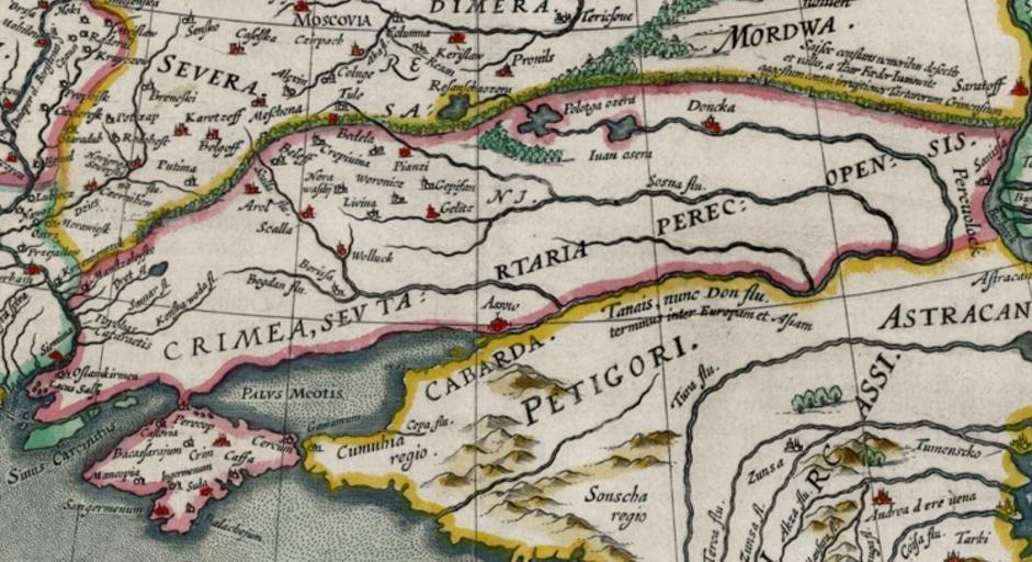 Keywords: Willem Janszoon Blaeu. Tabula Russiae ex autographo, quod delineandum curavit Foedor filius Tzaris Borois desumta. MDCXIIII.F.jpg en Willem Janszoon Blaeu Tabula Russiae ex autographo quod delineandum curavit Foedor filius Tzaris Borois desumta ¦ MDCXIIII<br /> A gorgeous example of Hessel Gerritsz's map of Russia with the large inset of Moscow and plan of Archangelsckagoroda Hessel Gerritsz's map of Russia first issued 1613 was published by Blaeu after he acquired the plate following Gerritsz's death in 1632 The top left corner has an inset plan of Moscow with a 17-point key On the right is a prospect of Archangel Russia's only northern port until the founding of St Petersburg in 1700 Three figures in Russian dress stand above The title is within a martial cartouche The map was compiled from manuscript maps and work brought back by Isaac Massa The inset plan of Moscow has been attributed to the Crown Prince Fydor Gudonov Image Willem Janszoon Blaeu Tabula Russiae ex autographo quod delineandum curavit Foedor filius Tzaris Borois desumta MDCXIIII jpg https //www raremaps com/gallery/detail/23941/Tabula_Russiae_ex_autographo_quod_delineandum_curavit_Foedor_filius_Tzaris/Blaeu html www raremaps com ca 1635 Creator Willem Janszoon Blaeu DEFAULTSORT 1635 PD-Art-100 Maps by Willem and Johannes Blaeu 1635 maps Old maps of Ukraine Old maps of Crimea |