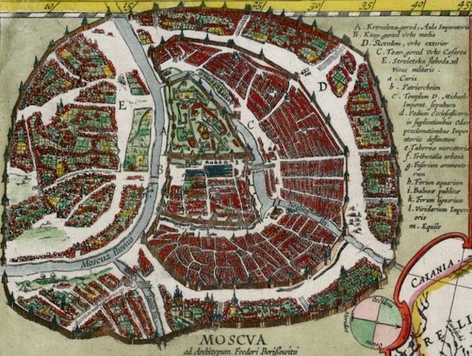 Keywords: Willem Janszoon Blaeu. Tabula Russiae ex autographo, quod delineandum curavit Foedor filius Tzaris Borois desumta. MDCXIIII.E.jpg en Willem Janszoon Blaeu Tabula Russiae ex autographo quod delineandum curavit Foedor filius Tzaris Borois desumta ¦ MDCXIIII<br /> A gorgeous example of Hessel Gerritsz's map of Russia with the large inset of Moscow and plan of Archangelsckagoroda Hessel Gerritsz's map of Russia first issued 1613 was published by Blaeu after he acquired the plate following Gerritsz's death in 1632 The top left corner has an inset plan of Moscow with a 17-point key On the right is a prospect of Archangel Russia's only northern port until the founding of St Petersburg in 1700 Three figures in Russian dress stand above The title is within a martial cartouche The map was compiled from manuscript maps and work brought back by Isaac Massa The inset plan of Moscow has been attributed to the Crown Prince Fydor Gudonov Image Willem Janszoon Blaeu Tabula Russiae ex autographo quod delineandum curavit Foedor filius Tzaris Borois desumta MDCXIIII jpg https //www raremaps com/gallery/detail/23941/Tabula_Russiae_ex_autographo_quod_delineandum_curavit_Foedor_filius_Tzaris/Blaeu html www raremaps com ca 1635 Creator Willem Janszoon Blaeu PD-Art-100 Maps by Willem and Johannes Blaeu 1635 maps Old maps of Moscow 1635 in Moscow |