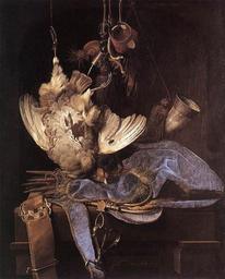 | Keywords: Willem van Aelst - Still-Life with Hunting Equipment and Dead Birds - WGA00036.jpg Artwork Creator Willem van Aelst 1668 Oil on canvas size cm 68 54 Institution Staatliche Kunsthalle Karlsruhe object history credit line accession number WGA link 36 http //www wga hu/art/a/aelst/deadbird jpg http //www wga hu/html/a/aelst/deadbird html <gallery> Aelst Willem van ~ Still Life with Hunting Equipment 1668 oil on canvas Staatliche Kunsthalle Karlsruhe jpg </gallery> painting still-life Dutch 1651-1700 Paintings by Willem van Aelst Paintings in Staatliche Kunsthalle Karlsruhe Aelst Stillife With Hunting Equipment 17th-century still life paintings in Germany 17th-century still life paintings of dead game by Willem van Aelst 1668 paintings in Hesse 1660s still life paintings WGA form painting WGA type still-life WGA School Dutch WGA time period 1651-1700 17th-century oil on canvas paintings in Germany Dead birds in art Oil still life paintings Hunting equipment PD-old-100 |