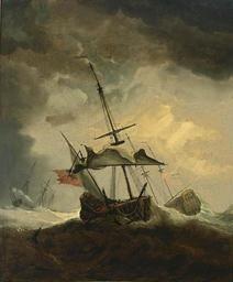 | Keywords: Willem van de Velde (II) - Small English Ship Dismasted in a Gale - WGA24535.jpg Artwork Creator Willem van de Velde the Younger other date ca 1700 Oil on canvas size cm 124 103 Private collection accession number object history credit line WGA link 24535 http //www wga hu/art/v/velde/willem/small2 jpg http //www wga hu/html/v/velde/willem/small2 html PD-old-100 painting landscape Dutch 1651-1700 Willem van de Velde II Paintings in unidentified private collections 1700s oil on canvas paintings WGA form painting WGA type landscape WGA School Dutch WGA time period 1651-1700 17th-century paintings in private collections Paintings of sailboats Sea storms in art |
