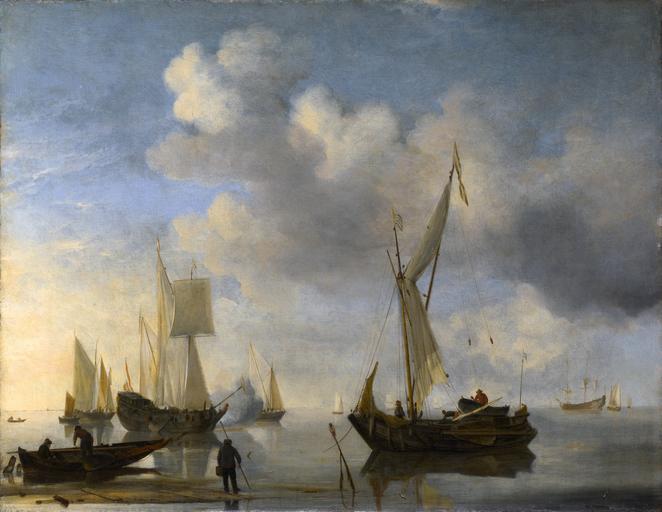 | Keywords: Willem van de Velde II - Dutch Vessels lying Inshore in a Calm, one Saluting.jpg  Artwork Creator Willem van de Velde II 1660 Oil canvas cm 54 6 69 5 institution National Gallery London Not on display accession number NG6407 http //www nationalgallery org uk/artists/willem-van-de-velde The National Gallery London object history credit line Presented by the Misses Rachel F and Jean I Alexander; entered the collection in 1972 exhibition history ~ signature / date http //en gallerix ru gallerix ru PD-old-100 DEFAULTSORT Velde Willem van de 2 Willem van de Velde II Dutch Golden Age paintings in the National Gallery London 1660s landscape paintings Oil paintings of seascapes |