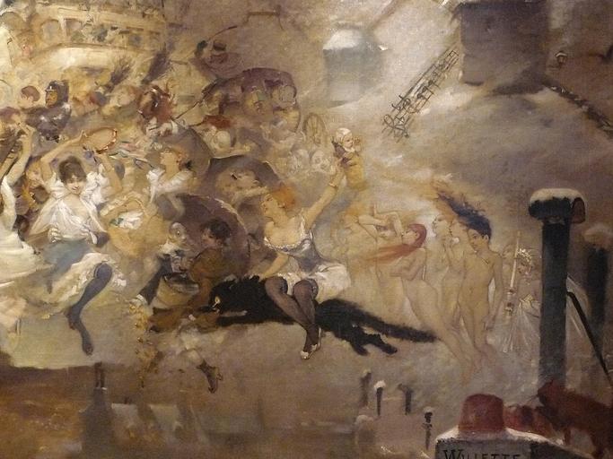 Keywords: WILLETTE Adolphe,1884 - Parce Domine - Detail 052.jpg - Detail 052 - Une foule en fête et un attelage à imperial au-dessus des toits de Paris près des moulins - a festive crowd and a double-deck carriage above Paris roofs near the mills - Montmartre - 1884 Oil on canvas Montmartre Own other versions PD-old-auto 1926 Details of Parce Domine by Adolphe Willette