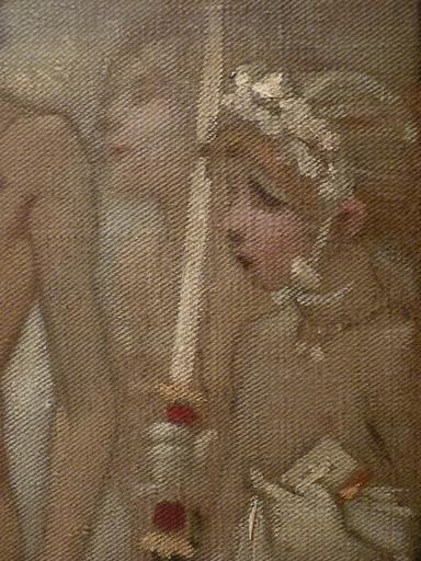 | Keywords: WILLETTE Adolphe,1884 - Parce Domine - Detail 163.jpg Detail 163 - Petite communiante tenant un cierge et une bible dans ses mains - - A little communicant holding a lighted candle and a bible in her hands - Montmartre - 1884 Oil on canvas Montmartre Own other versions PD-old-auto 1926 Details of Parce Domine by Adolphe Willette |