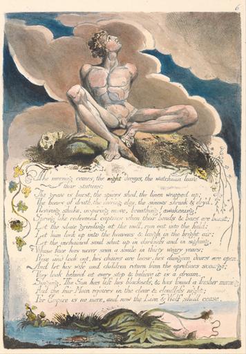 | Keywords: William Blake - America. A Prophecy, Plate 8, "The Morning Comes...." - Google Art Project.jpg print green pen ink black watercolor paper cream Color-printed relief etching in green-black with pen and black ink and watercolor on moderately thick slightly textured cream wove paper London 1757 London 1827 William male 2369124 Blake British 1757 - 1827 /collection/yale-center-for-british-art/artwork/america-a-prophecy-plate-8-the-morning-comes-william-blake/2374931/ William Blake Artist /artist/william-blake/4130035/ 4130035 /collection/yale-center-for-british-art/ Yale Center for British Art 2305845 http //britishart yale edu/ 2/23/2012 9 54 49 PM /collection/yale-center-for-british-art/artwork/america-a-prophecy-plate-8-the-morning-comes-william-blake/2374931/ 1793 1793 clouds thistle sitting snake men leaf skull text plants vines nudes historical subject Color-printed relief etching in green-black with pen and black ink and watercolor on moderately thick slightly textured cream wove paper 238 2374931 False 1793 3/24/2012 3 29 23 PM YCBA/lido-TMS-3867 http //collections britishart yale edu/vufind/Record/1668110 Yale Center for British Art Paul Mellon Collection print 1790 1800 London Creation w168 x h238 cm 1793 False 0 6953125 Volume america-a-prophecy-plate-8-the-morning-comes-william-blake America A Prophecy Plate 8 The Morning Comes a 168 Inscribed in blue ink upper right 6 Inscription _Signed_and_Dated Not signed not dated Not on View Color-printed relief etching in green-black with pen and black ink and watercolor on moderately thick slightly textured cream wove paper clouds thistle sitting snake men leaf skull text plants vines nudes historical subject special url_id SQGLb8IOhr2Qtg PD-old-100-1923 1827 Google Art Project works by William Blake America a Prophecy - copy M |