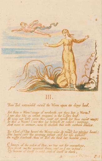 | Keywords: William Blake - The Book of Thel, Plate 6, "III. , Then Thel astonish'd . . . ." - Google Art Project.jpg print brown pen ink paper cream Relief etching printed in brown with pen and ink on moderately thick slightly textured cream wove paper print brown pen ink watercolor paper cream Relief etching printed in brown with pen and ink and watercolor on moderately thick slightly textured cream wove paper London 1757 London 1827 William male 2369124 Blake British 1757 - 1827 /collection/yale-center-for-british-art/artwork/the-book-of-thel-plate-6-iii-then-thel-astonishd-william-blake/2356597/ William Blake Artist /artist/william-blake/4130035/ 4130035 /collection/yale-center-for-british-art/ Yale Center for British Art 2305845 http //britishart yale edu/ 2/23/2012 9 34 15 PM /collection/yale-center-for-british-art/artwork/the-book-of-thel-plate-6-iii-then-thel-astonishd-william-blake/2356597/ 1789 1789 infants men women text plants trees flowers grass vines robes gowns nudes historical subject Relief etching printed in brown with pen and ink and watercolor on moderately thick slightly textured cream wove paper 152 2356597 False 1789 3/24/2012 1 44 54 PM YCBA/lido-TMS-2258 http //collections britishart yale edu/vufind/Record/1667252 Yale Center for British Art Paul Mellon Collection print 1780 1790 Felpham Creation w108 x h152 cm 1789 False 0 638671875 Volume the-book-of-thel-plate-6-iii-then-thel-astonishd-william-blake The Book of Thel Plate 6 III / Then Thel astonish'd b 108 No inscription Inscription _Signed_and_Dated Not signed not dated Not on View Relief etching printed in brown with pen and ink and watercolor on moderately thick slightly textured cream wove paper infants men women text plants trees flowers grass vines robes gowns nudes historical subject special url_id pgF1cnMLGFVwKQ PD-old-100-1923 1827 The Book of Thel Google Art Project works by William Blake |