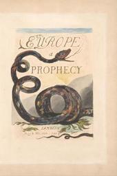 Keywords: William Blake - Europe. A Prophecy, Plate 2, Title Page - Google Art Project.jpg print brown pen ink black oil watercolor paper cream Color-printed relief etching in dark brown with pen and black ink oil and watercolor on moderately thick slightly textured cream wove paper London 1757 London 1827 William male 2369124 Blake British 1757 - 1827 /collection/yale-center-for-british-art/artwork/europe-a-prophecy-plate-2-title-page-william-blake/2394190/ William Blake Artist /artist/william-blake/4130035/ 4130035 /collection/yale-center-for-british-art/ Yale Center for British Art 2305845 http //britishart yale edu/ 2/23/2012 9 55 43 PM /collection/yale-center-for-british-art/artwork/europe-a-prophecy-plate-2-title-page-william-blake/2394190/ 1794 1794 serpent snake leaf text plants historical subject Color-printed relief etching in dark brown with pen and black ink oil and watercolor on moderately thick slightly textured cream wove paper inlaid to size 375 2394190 False 1794 3/25/2012 9 17 43 PM YCBA/lido-TMS-3880 http //collections britishart yale edu/vufind/Record/1668155 Yale Center for British Art Paul Mellon Collection print 1790 1800 Felpham Creation w267 x h375 cm 1794 False 0 662109375 Volume europe-a-prophecy-plate-2-title-page-william-blake Europe A Prophecy Plate 2 Title Page e 267 Inscribed on back in graphite center 2 Inscription _Signed_and_Dated Not signed not dated Not on View Color-printed relief etching in dark brown with pen and black ink oil and watercolor on moderately thick slightly textured cream wove paper inlaid to size serpent snake leaf text plants historical subject special url_id BwFSe2l-tnmX6w PD-old-100-1923 1827 Europe a Prophecy Google Art Project works by William Blake |