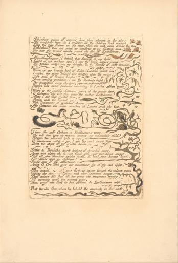 Keywords: William Blake - Europe. A Prophecy, Plate 16, "Ethinthus queen of waters . . . . " (Bentley 17) - Google Art Project.jpg print brown pen ink black oil watercolor paper cream Color-printed relief etching in dark brown with pen and black ink oil and watercolor on moderately thick slightly textured cream wove paper London 1757 London 1827 William male 2369124 Blake British 1757 - 1827 /collection/yale-center-for-british-art/artwork/europe-a-prophecy-plate-16-ethinthus-queen-of-waters-bentley-17-william-blake/2394206/ William Blake Artist /artist/william-blake/4130035/ 4130035 /collection/yale-center-for-british-art/ Yale Center for British Art 2305845 http //britishart yale edu/ 2/23/2012 9 55 58 PM /collection/yale-center-for-british-art/artwork/europe-a-prophecy-plate-16-ethinthus-queen-of-waters-bentley-17-william-blake/2394206/ 1794 1794 birds serpent snake leaf text flowers vines historical subject Color-printed relief etching in dark brown with pen and black ink oil and watercolor on moderately thick slightly textured cream wove paper 375 2394206 False 1794 3/24/2012 5 19 13 PM YCBA/lido-TMS-3890 http //collections britishart yale edu/vufind/Record/1668166 Yale Center for British Art Paul Mellon Collection print 1790 1800 Felpham Creation w267 x h375 cm 1794 False 0 6796875 Volume europe-a-prophecy-plate-16-ethinthus-queen-of-waters-bentley-17-william-blake Europe A Prophecy Plate 16 Ethinthus queen of waters Bentley 17 e 267 Inscribed in gray ink upper right 14 Inscription _Signed_and_Dated Not signed not dated Not on View Color-printed relief etching in dark brown with pen and black ink oil and watercolor on moderately thick slightly textured cream wove paper birds serpent snake leaf text flowers vines historical subject special url_id nQExFMA9lo-_SA PD-old-100-1923 1827 Europe a Prophecy Google Art Project works by William Blake