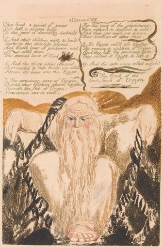 | Keywords: William Blake - The First Book of Urizen, Plate 25, "They lived a period of years . . . ." (Bentley 28) - Google Art Project.jpg print brown watercolor paper cream Color-printed relief etching in orange-brown with watercolor on moderately thick slightly textured cream wove paper London 1757 London 1827 William male 2369124 Blake British 1757 - 1827 /collection/yale-center-for-british-art/artwork/the-first-book-of-urizen-plate-25-they-lived-a-period-of-years-bentley-28-william-blake/2363474/ William Blake Artist /artist/william-blake/4130035/ 4130035 /collection/yale-center-for-british-art/ Yale Center for British Art 2305845 http //britishart yale edu/ 2/23/2012 9 36 06 PM /collection/yale-center-for-british-art/artwork/the-first-book-of-urizen-plate-25-they-lived-a-period-of-years-bentley-28-william-blake/2363474/ 1794 1794 beard men rope net text historical subject Color-printed relief etching in orange-brown with watercolor on moderately thick slightly textured cream wove paper 149 2363474 False 1794 3/24/2012 2 20 20 PM YCBA/lido-TMS-2370 http //collections britishart yale edu/vufind/Record/1667328 Yale Center for British Art Paul Mellon Collection print 1790 1800 Felpham Creation w105 x h149 cm 1794 False 0 65625 Volume the-first-book-of-urizen-plate-25-they-lived-a-period-of-years-bentley-28-william-blake The First Book of Urizen Plate 25 They lived a period of years Bentley 28 f 105 Inscribed in graphite lower left 26 Inscription _Signed_and_Dated Not signed not dated Not on View Color-printed relief etching in orange-brown with watercolor on moderately thick slightly textured cream wove paper beard men rope net text historical subject special url_id mgEvdGtl2ZTK5Q PD-old-100-1923 1827 The Book of Urizen Google Art Project works by William Blake |