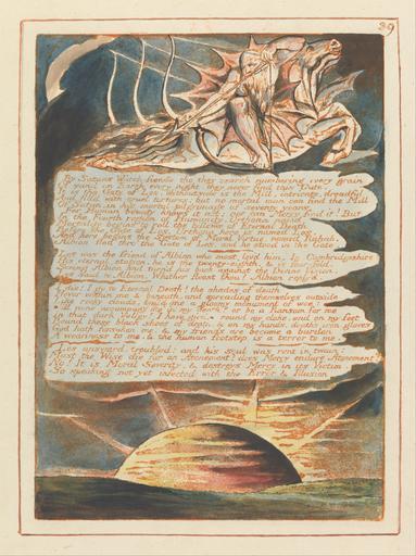 | Keywords: William Blake - Jerusalem, Plate 39, "By Satans Watch-fiends...." - Google Art Project.jpg print orange pen ink black watercolor paper cream Relief etching printed in orange with pen and black ink and watercolor on moderately thick smooth cream wove paper London 1757 London 1827 William male 2369124 Blake British 1757 - 1827 /collection/yale-center-for-british-art/artwork/jerusalem-plate-39-by-satans-watch-fiends-william-blake/2372717/ William Blake Artist /artist/william-blake/4130035/ 4130035 /collection/yale-center-for-british-art/ Yale Center for British Art 2305845 http //britishart yale edu/ 2/23/2012 9 46 45 PM /collection/yale-center-for-british-art/artwork/jerusalem-plate-39-by-satans-watch-fiends-william-blake/2372717/ 1804 1804 to 1820 beard bald sun sky wings horse animal flames men fire archery text bow historical subject Relief etching printed in orange with pen and black ink and watercolor on moderately thick smooth cream wove paper 225 2372717 False 1820 3/24/2012 3 13 06 PM YCBA/lido-TMS-3469 http //collections britishart yale edu/vufind/Record/1667754 Yale Center for British Art Paul Mellon Collection print 1800 1830 London Creation w159 x h225 cm 1804 to 1820 False 0 748046875 Volume jerusalem-plate-39-by-satans-watch-fiends-william-blake Jerusalem Plate 39 By Satans Watch-fiends j 159 No inscription Inscription _Signed_and_Dated Not signed not dated Not on View Relief etching printed in orange with pen and black ink and watercolor on moderately thick smooth cream wove paper beard bald sun sky wings horse animal flames men fire archery text bow historical subject special url_id kAFGgWzxD2tpwQ PD-old-100-1923 1827 Jerusalem The Emanation of the Giant Albion - copy E 039 Google Art Project works by William Blake |
