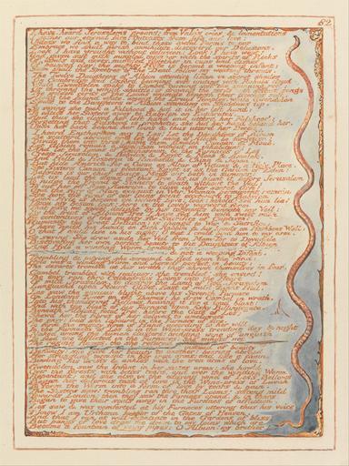 | Keywords: William Blake - Jerusalem, Plate 82, "I have heard Jerusalems groans...." - Google Art Project.jpg  print orange pen ink black watercolor paper cream Relief etching printed in orange with pen and black ink and watercolor on moderately thick smooth cream wove paper London 1757 London 1827 William male 2369124 Blake British 1757 - 1827 /collection/yale-center-for-british-art/artwork/jerusalem-plate-82-i-have-heard-jerusalems-groans-william-blake/2368920/ William Blake Artist /artist/william-blake/4130035/ 4130035 /collection/yale-center-for-british-art/ Yale Center for British Art 2305845 http //britishart yale edu/ 2/23/2012 9 48 00 PM /collection/yale-center-for-british-art/artwork/jerusalem-plate-82-i-have-heard-jerusalems-groans-william-blake/2368920/ 1804 1804 to 1820 clouds sky snake smoke text text historical subject historical subject Relief etching printed in orange with pen and black ink and watercolor on moderately thick smooth cream wove paper 222 2368920 False 1820 3/24/2012 2 50 33 PM YCBA/lido-TMS-3517 http //collections britishart yale edu/vufind/Record/1667808 Yale Center for British Art Paul Mellon Collection print 1800 1830 London Creation w162 x h222 cm 1804 to 1820 False 0 75 Volume jerusalem-plate-82-i-have-heard-jerusalems-groans-william-blake Jerusalem Plate 82 I have heard Jerusalems groans j 162 No inscription Inscription _Signed_and_Dated Not signed not dated Not on View Relief etching printed in orange with pen and black ink and watercolor on moderately thick smooth cream wove paper clouds sky snake smoke text text historical subject historical subject special url_id lQGjdvTl1j3N4g PD-old-100-1923 1827 Jerusalem The Emanation of the Giant Albion - copy E 082 Google Art Project works by William Blake |