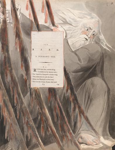 | Keywords: William Blake - The Poems of Thomas Gray, Design 55, "The Bard." - Google Art Project.jpg Inscribed in black ink upper right 3 ; in graphite upper center + + ; on verso in black ink upper left 4 ; in graphite upper center 2 x ; in graphite center 1 X Inscription _Signed_and_Dated Not signed not dated Not on View Watercolor with pen and black ink graphite and gouache on moderately thick slightly textured cream wove paper with inlaid letterpress page beard leaf bard women knights horse animal man men ropes armor feather text trees vines crown costume component robe lance spear historical subject special url_id 3QFSVLq8uY-5fw PD-old-100-1923 1827 Google Art Project works by William Blake William Blake's illustrations to Thomas Gray's Poems 055 |