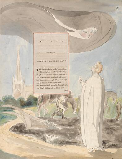 MAKE A MEME View Large Image William Blake - The Poems of Thomas Gray, Design 107, "Elegy Written in a Country Church-Yard." - Google Art Project.jpg watercolor pen ink black graphite paper cream Watercolor with pen and black ink and graphite on moderately thick ...