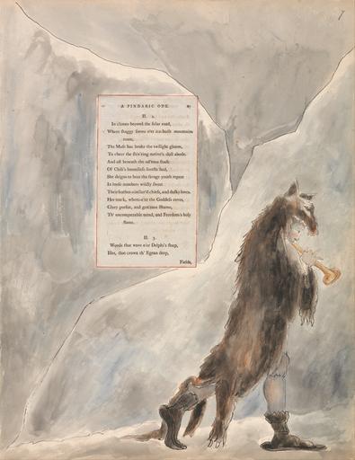 | Keywords: William Blake - The Poems of Thomas Gray, Design 47, "The Progress of Poesy." - Google Art Project.jpg watercolor pen ink black graphite paper cream Watercolor with pen and black ink and graphite on moderately thick moderately textured cream wove paper London 1757 London 1827 William male 2369124 Blake British 1757 - 1827 /collection/yale-center-for-british-art/artwork/the-poems-of-thomas-gray-design-47-the-progress-of-poesy-william-blake/2383489/ William Blake Artist /artist/william-blake/4130035/ 4130035 /collection/yale-center-for-british-art/ Yale Center for British Art 2305845 http //britishart yale edu/ 2/23/2012 9 50 15 PM /collection/yale-center-for-british-art/artwork/the-poems-of-thomas-gray-design-47-the-progress-of-poesy-william-blake/2383489/ 1797 between 1797 and 1798 wolf angels musician queen person man men ice fur pelt stone chains text crown costume component wings coat shackles boots organ trumpet historical subject sceptre Watercolor with pen and black ink and graphite on moderately thick slightly textured cream wove paper with inlaid letterpress page 419 2383489 False 1798 3/24/2012 4 17 32 PM YCBA/lido-TMS-3636 http //collections britishart yale edu/vufind/Record/1667908 Yale Center for British Art Paul Mellon Collection painting 1790 1800 London Creation w324 x h419 cm between 1797 and 1798 False 0 76953125 Volume the-poems-of-thomas-gray-design-47-the-progress-of-poesy-william-blake The Poems of Thomas Gray Design 47 The Progress of Poesy p 324 Inscribed in gray ink upper right 7 ; in graphite upper center x ; on verso in gray ink upper left 8 ; in graphite center x Inscription _Signed_and_Dated Not signed not dated Not on View Watercolor with pen and black ink and graphite on moderately thick slightly textured cream wove paper with inlaid letterpress page wolf angels musician queen person man men ice fur pelt stone chains text crown costume component wings coat shackles boots organ trumpet historical subject sceptre special url_id lQEJ1bQ25-75Ag PD-old-100-1923 1827 Google Art Project works by William Blake William Blake's illustrations to Thomas Gray's Poems 047 |