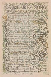 | Keywords: William Blake - Songs of Innocence and of Experience, Plate 26, "A Cradle Song" (Bentley 16) - Google Art Project.jpg print green pen ink watercolor paper cream Relief etching printed in green with pen and ink and watercolor on moderately thick slightly textured cream wove paper London 1757 London 1827 William male 2369124 Blake British 1757 - 1827 /collection/yale-center-for-british-art/artwork/songs-of-innocence-and-of-experience-plate-26-a-cradle-song-bentley-16-william-blake/2363522/ William Blake Artist /artist/william-blake/4130035/ 4130035 /collection/yale-center-for-british-art/ Yale Center for British Art 2305845 http //britishart yale edu/ 2/23/2012 9 37 15 PM /collection/yale-center-for-british-art/artwork/songs-of-innocence-and-of-experience-plate-26-a-cradle-song-bentley-16-william-blake/2363522/ 1789 1789 branches sleeping mother women children infant baby woman leaf text vines chair cradle crib drapes historical subject Relief etching printed in green with pen and ink and watercolor on moderately thick slightly textured cream wove paper 114 2363522 False 1789 3/24/2012 2 22 26 PM YCBA/lido-TMS-2505 http //collections britishart yale edu/vufind/Record/1667376 Yale Center for British Art Paul Mellon Collection print 1780 1790 Felpham Creation w73 x h114 cm 1789 False 0 6640625 Volume songs-of-innocence-and-of-experience-plate-26-a-cradle-song-bentley-16-william-blake Songs of Innocence and of Experience Plate 26 A Cradle Song Bentley 16 s 73 Inscribed in graphite upper center 15 Inscription _Signed_and_Dated Not signed not dated Not on View Relief etching printed in green with pen and ink and watercolor on moderately thick slightly textured cream wove paper branches sleeping mother women children infant baby woman leaf text vines chair cradle crib drapes historical subject special url_id 5QEE_vJoykWyfA PD-old-100-1923 1827 Songs of Innocence and Experience - Copy F Google Art Project works by William Blake |