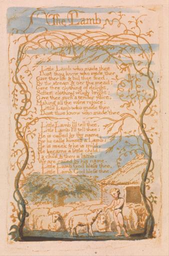 | Keywords: William Blake - Songs of Innocence, Plate 8, "The Lamb" (Bentley 8) - Google Art Project.jpg print brown pen ink black watercolor paper cream Relief etching printed in brown with pen and black ink and watercolor on moderately thick slightly textured cream wove paper London 1757 London 1827 William male 2369124 Blake British 1757 - 1827 /collection/yale-center-for-british-art/artwork/songs-of-innocence-plate-8-the-lamb-bentley-8-william-blake/2378614/ William Blake Artist /artist/william-blake/4130035/ 4130035 /collection/yale-center-for-british-art/ Yale Center for British Art 2305845 http //britishart yale edu/ 2/23/2012 9 51 32 PM /collection/yale-center-for-british-art/artwork/songs-of-innocence-plate-8-the-lamb-bentley-8-william-blake/2378614/ 1789 1789 clouds branches leaf angels wings sheep lamb cherubs mother children boy woman shepherd reading house text vegetation plant trees vines nude historical subject book Relief etching printed in brown with pen and black ink and watercolor on moderately thick slightly textured cream wove paper 111 2378614 False 1789 3/24/2012 3 48 40 PM YCBA/lido-TMS-3724 http //collections britishart yale edu/vufind/Record/1667968 Yale Center for British Art Paul Mellon Collection print 1780 1790 Felpham Creation w70 x h111 cm 1789 False 0 66015625 Volume songs-of-innocence-plate-8-the-lamb-bentley-8-william-blake Songs of Innocence Plate 8 The Lamb Bentley 8 s 70 No inscription Inscription _Signed_and_Dated Not signed not dated Not on View Relief etching printed in brown with pen and black ink and watercolor on moderately thick slightly textured cream wove paper clouds branches leaf angels wings sheep lamb cherubs mother children boy woman shepherd reading house text vegetation plant trees vines nude historical subject book special url_id pAGLii-cHS0yDQ PD-old-100-1923 1827 Songs of Innocence - The Lamb Google Art Project works by William Blake Songs of Innocence - Copy G 1789 |