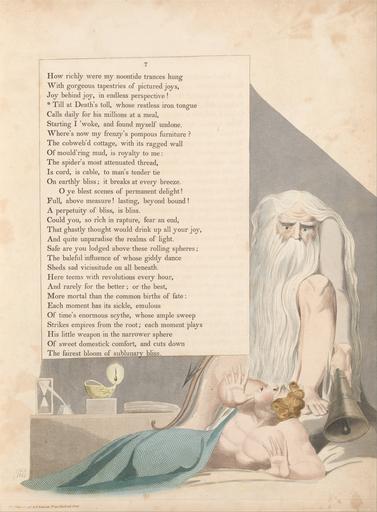 | Keywords: William Blake - Young's Night Thoughts, Page 7, "Till at Death's Toll, Whose Restless Iron Tongue" - Google Art Project.jpg etching line engraving watercolor paper cream Etching and line engraving with watercolor on moderately thick slightly textured cream wove paper London 1757 London 1827 William male 2369124 Blake British 1757 - 1827 /collection/yale-center-for-british-art/artwork/youngs-night-thoughts-page-7-till-at-deaths-toll-whose-restless-iron-tounge-william-blake/2373709/ William Blake Artist /artist/william-blake/4130035/ 4130035 /collection/yale-center-for-british-art/ Yale Center for British Art 2305845 http //britishart yale edu/ 2/23/2012 9 49 17 PM /collection/yale-center-for-british-art/artwork/youngs-night-thoughts-page-7-till-at-deaths-toll-whose-restless-iron-tounge-william-blake/2373709/ 1797 1797 beard men arrows text lamp quill pen bow bell hourglass historical subject book Etching and line engraving with watercolor on moderately thick slightly textured cream wove paper 445 2373709 False 1797 3/24/2012 3 20 32 PM YCBA/lido-TMS-3570 http //collections britishart yale edu/vufind/Record/1667865 Yale Center for British Art Paul Mellon Collection print 1790 1800 Felpham Creation w327 x h445 cm 1797 False 0 736328125 Volume youngs-night-thoughts-page-7-till-at-deaths-toll-whose-restless-iron-tounge-william-blake Young's Night Thoughts Page 7 Till at Death's Toll Whose Restless Iron Tounge y 327 No inscription Inscription _Signed_and_Dated Not signed not dated Not on View Etching and line engraving with watercolor on moderately thick slightly textured cream wove paper beard men arrows text lamp quill pen bow bell hourglass historical subject book special url_id iwEK88il1iRbDQ PD-old-100-1923 1827 William Blake's illustrations to Young's Night Thoughts 007 Google Art Project works by William Blake |