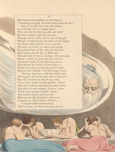 | Keywords: William Blake - Young's Night Thoughts, Page 57, "Trembling Each Gulp, Lest Death Should Snatch the Bowl" - Google Art Project.jpg etching line engraving watercolor paper cream Etching and line engraving with watercolor on moderately thick slightly textured cream wove paper London 1757 London 1827 William male 2369124 Blake British 1757 - 1827 /collection/yale-center-for-british-art/artwork/youngs-night-thoughts-page-57-trembling-each-gulp-lest-death-should-snatch-the-bowl-william-blake/2378467/ William Blake Artist /artist/william-blake/4130035/ 4130035 /collection/yale-center-for-british-art/ Yale Center for British Art 2305845 http //britishart yale edu/ 2/23/2012 9 48 55 PM /collection/yale-center-for-british-art/artwork/youngs-night-thoughts-page-57-trembling-each-gulp-lest-death-should-snatch-the-bowl-william-blake/2378467/ 1797 1797 beard drinking men women text table bowl historical subject mourning Etching and line engraving with watercolor on moderately thick slightly textured cream wove paper 445 2378467 False 1797 3/24/2012 3 47 45 PM YCBA/lido-TMS-3557 http //collections britishart yale edu/vufind/Record/1667850 Yale Center for British Art Paul Mellon Collection print 1790 1800 London Creation w324 x h445 cm 1797 False 0 7578125 Volume youngs-night-thoughts-page-57-trembling-each-gulp-lest-death-should-snatch-the-bowl-william-blake Young's Night Thoughts Page 57 Trembling Each Gulp Lest Death Should Snatch the Bowl y 324 No inscription Inscription _Signed_and_Dated Not signed not dated Not on View Etching and line engraving with watercolor on moderately thick slightly textured cream wove paper beard drinking men women text table bowl historical subject mourning special url_id 0wH_LyjdrqjIag PD-old-100-1923 1827 William Blake's illustrations to Young's Night Thoughts 057 Google Art Project works by William Blake |