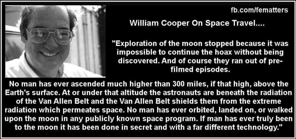 | Keywords: william cooper space travel man van allen belt radiation orbit surface landed secret 300 miles technology flatearth memes flat dome firmament yinyang bible truth flatearth.online flatearthonline sun moon curve curvature nocurve blackandwhite people monochrome writing text black and white Exploration of the moon stopped because it was impossible to continue the hoax without being discovered. And of course they ran out of pre-filmed episodes. No man has ever ascended much higher than 300 miles, if that high, above the earth's surface. At or under that altitude the astronauts are beneath the radiation of the Van Allen Belt and the Van Allen Belt shields them from the extreme radiation which permeates space. Now man has ever orbited, landed on, or walked upon the moon in any publicly known space program. If man has ever truly been to the moon it has been done in secret and with a far different technology. FlatEarth meme collected by A.J. Wilson of iPressThis at FlatEarth.Online, made by others. Exploration of the moon stopped because it was impossible to continue the hoax without being discovered. And of course they ran out of pre-filmed episodes. No man has ever ascended much higher than 300 miles, if that high, above the earth's surface. At or under that altitude the astronauts are beneath the radiation of the Van Allen Belt and the Van Allen Belt shields them from the extreme radiation which permeates space. Now man has ever orbited, landed on, or walked upon the moon in any publicly known space program. If man has ever truly been to the moon it has been done in secret and with a far different technology. FlatEarth meme collected by A.J. Wilson of iPressThis at FlatEarth.Online, made by others. |