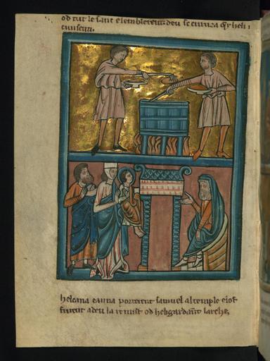| Keywords: William de Brailes - Top - Eli's Sons Commit Sacrilege (1 Samuel 2 -13-17) - Walters W10617V - Full Page.jpg Walters Art Museum artwork Creator William de Brailes This page from Walters manuscript W 106 depicts scenes from the story of Samuel Top The priest Eli's sons Hophni and Phinehas were also priests at the temple and they took sacrifices that had been made at teh temple before the fat had been burned; they wanted it raw The sin that they committed was very great in the eyes of God Bottom When Samuel was weaned Hannah and Elkanah brought him to the temple ca 1250 Medieval ink pigment parchment cm 13 2 9 5 accession number W 106 17V 12981 Léon Gruel Paris date and mode of acquisition unknown Henry Walters Baltimore June 6 1903 by purchase see The Diaries of George Lucas Walters Art Museum Henry Walters Acquired by Henry Walters 1903 Translation the inscription for the TOP image has been partially cut off but the remainder reads with all the blood and they stole it God grew angry because Eli consented to it; Transliteration od tut le sanc e l'emblerent deu se curuza quar heli i cunsenti Translation the inscription BELOW the image reads Elkanah and Hannah brought Samuel to the temple and offered him to God He remained there with Eli guarding the Ark; Transliteration helcana e anna porterent samuel al temple e l'offurent a deu la remist od heli gardaunt l'arche The Bible Before Luther The Walters Art Gallery Baltimore 1992-1993 place of origin Oxford England United Kingdom Walters Art Museum license 2D Walters MS W106 - Bible Pictures by William de Brailes Eli Bible Media contributed by the Walters Art Museum needs category review Hannah mother of Samuel |