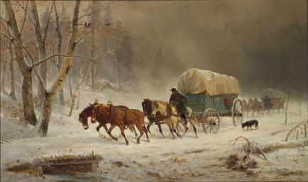 | Keywords: William Hahn - Going Home (Pioneers Braving a Storm).jpg Artwork creator William Hahn 1878 oil canvas in 24 40 object history Kral Fine Arts Oakland California; Private collection Northern California credit line Wm Hahn N J 1878 signed/date lower right accession number http //www bonhams com/auctions/13221/lot/92/ Bonhams PD-old-auto-1923 1887 William Hahn Images from Bonhams | ||||