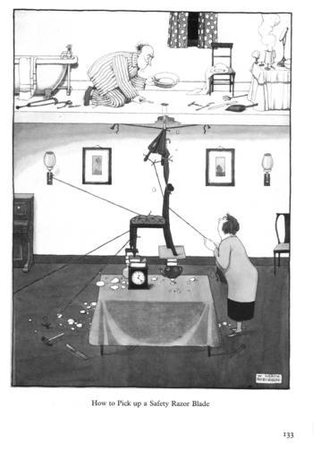 Keywords: William Heath Robinson Inventions - Page 133.png William Heath Robinson Inventions - How to Pick up a Safety Razor Blade From the Book William Heath Robinson Inventions Amada44 PD-old-70 William Heath Robinson Inventions